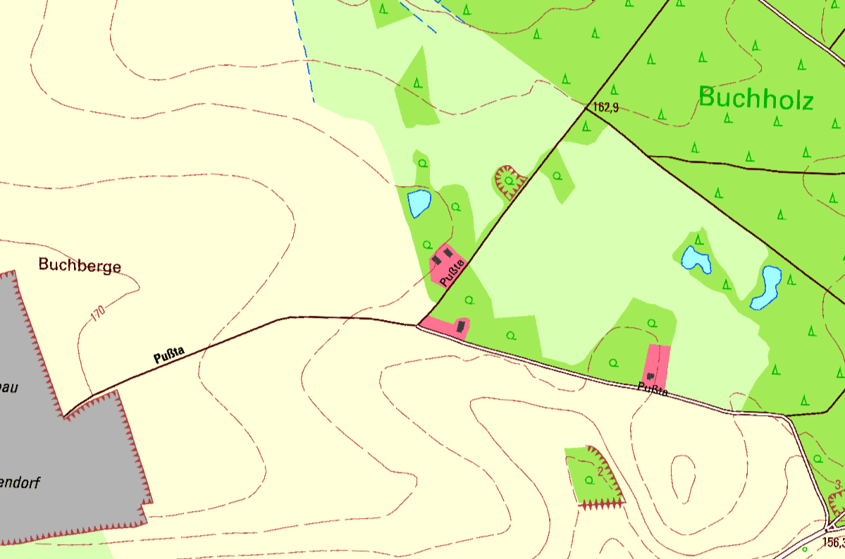 Der Dahlener Weg verläuft durch den Wermsdorfer Forst und das sogenannte Revier Buchholz. An dessen westlichem Rand entstand nach dem Zweiten Weltkrieg die Siedlung „Pußta“. Da der Wermsdorfer Forst intensiv durch sowjetische Besatzungsmächte genutzt wurde, ist davon auszugehen, dass sie dem Landstreifen den Namen in Anlehnung an die ungarische Landschaftsform gaben.
