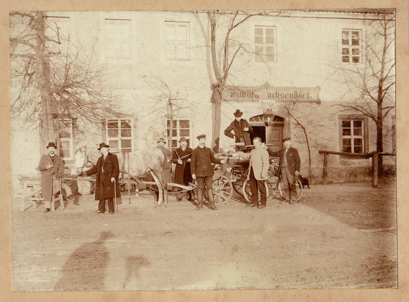 Schankwirtschaften oder auch Dorfschänken gab es in Sachsendorf bereits vor dem 16. Jahrhundert. Neben der kleinen Bauernwirtschaft hatten zwei bis drei Häusler eine Schankkonzession, beurkundet vom Rittergutsbesitzer. In den Wirtschaften wurde das Bier des hiesigen Rittergutsbesitzers ausgeschenkt. Ihm war man steuerpflichtig und so hatte jeder etwas vom Geschäft. Ab dem Jahre 1724 lohnte es sich, eine Schankwirtschaft an der neu gebauten Poststraße zu haben. Bei Unwetter oder des Nachts war eine Herberge für Durchreisende mit der Postkutsche nützlich. So entwickelte sich der Bedarf für eine Dorfschänke mit Ofenbank, Essenangebot, Gästekammern und Pferdestall.